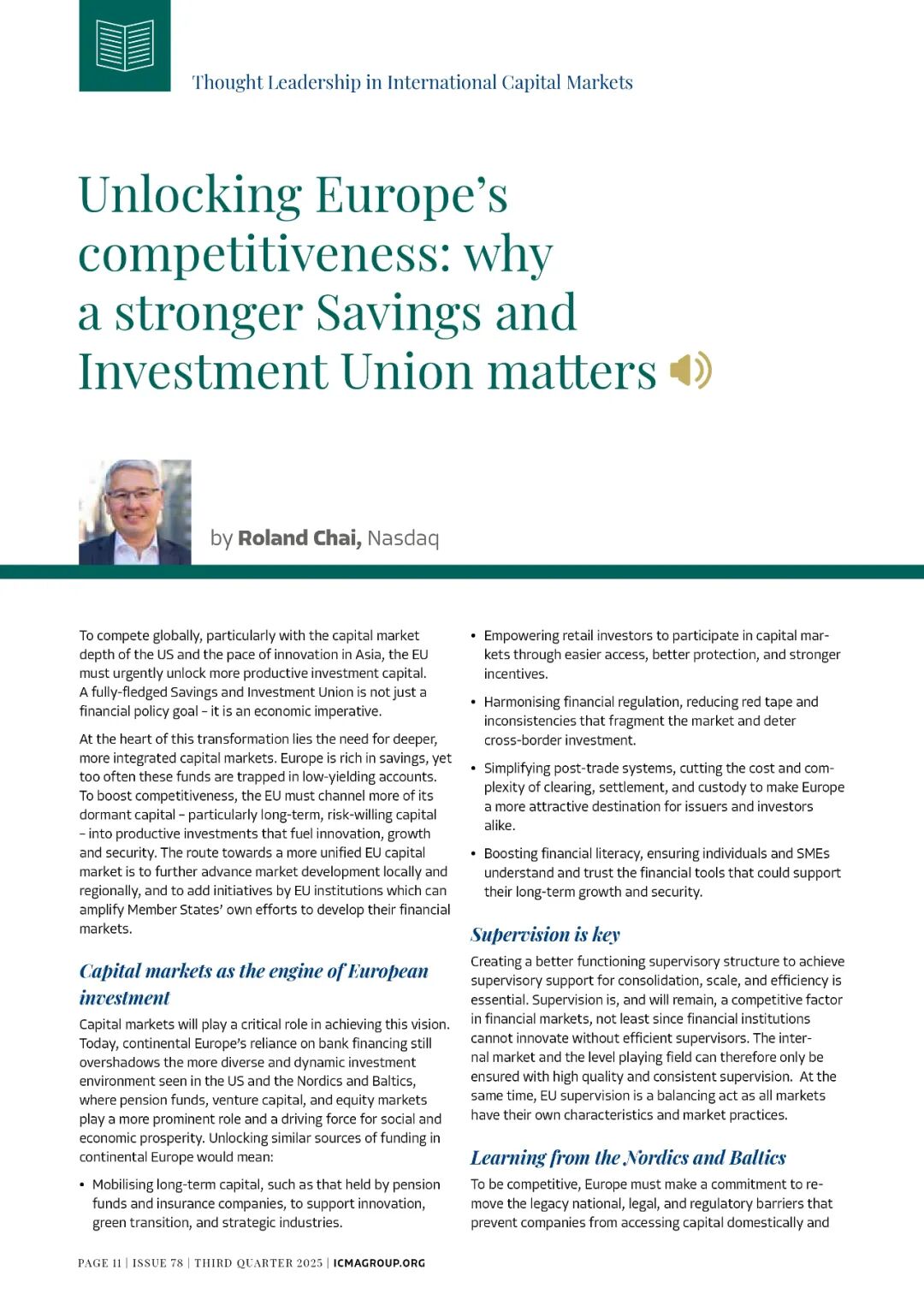 国际资本市场协会ICMA丨释放欧洲竞争力:强化储蓄与投资联盟为何...