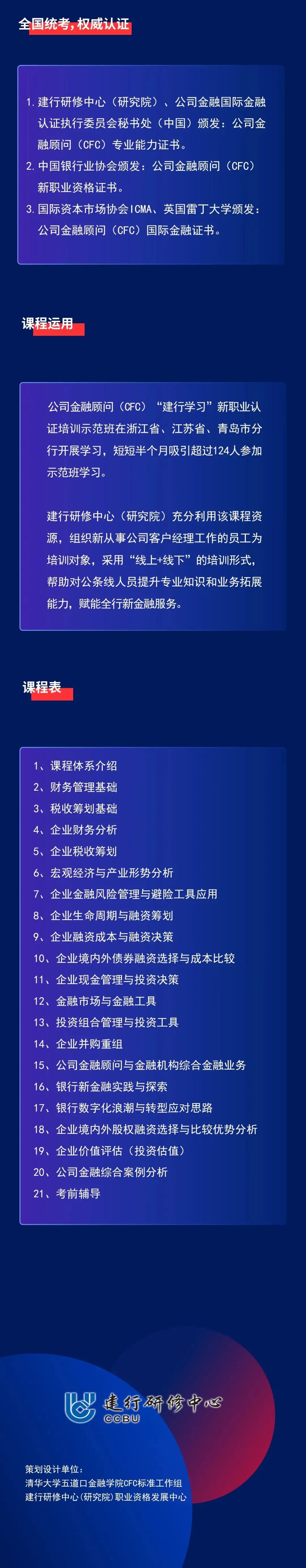 公司金融顾问动态丨CFC“建行学习”新职业认证培训示范班课程发布